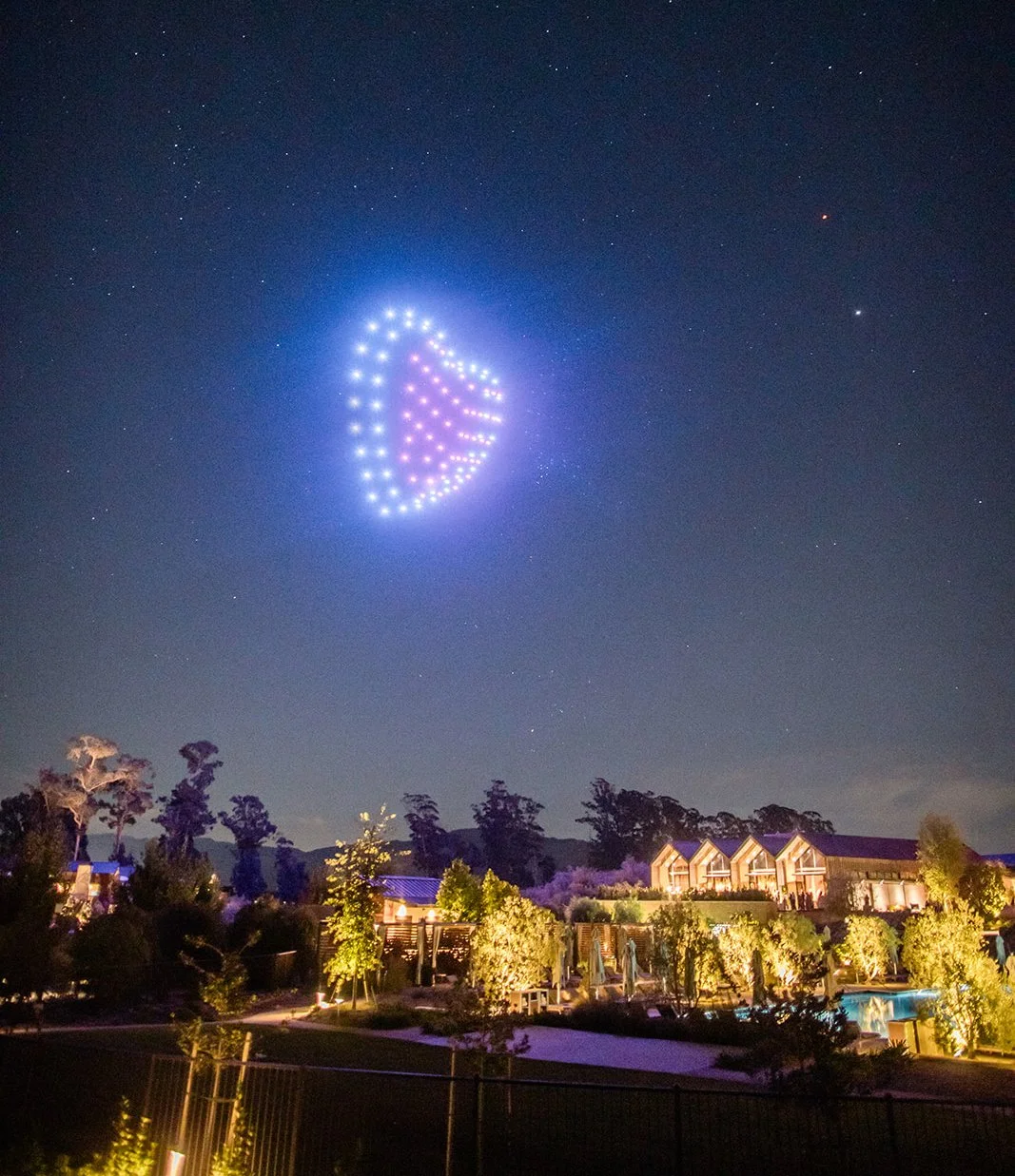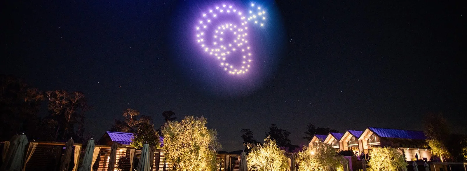 Wedding drone show at Stanly Ranch Auberge Resort in Napa Valley. The show included 100 drones.